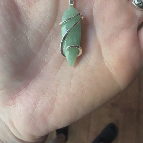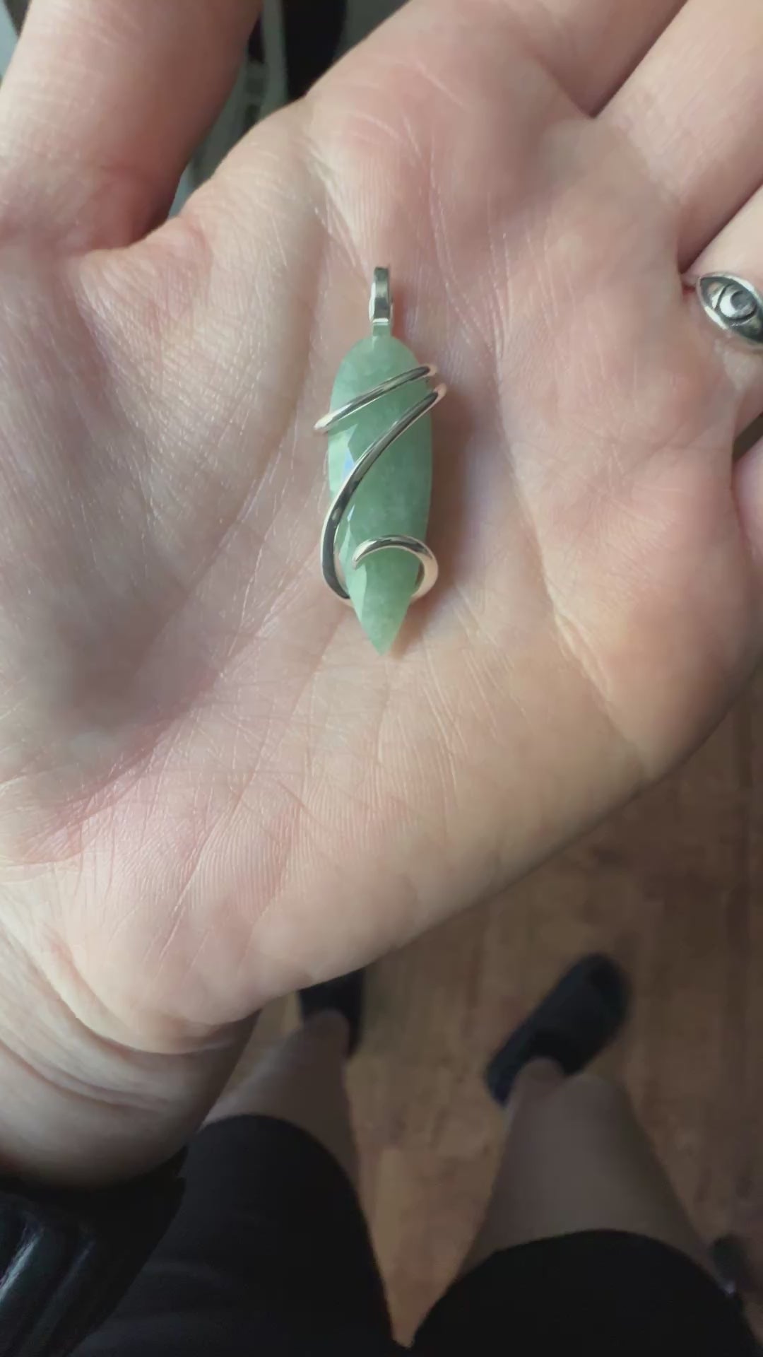 Beautiful faceted aventurine, also know as green quartz. Artfully tension set in polished sterling silver pendant.