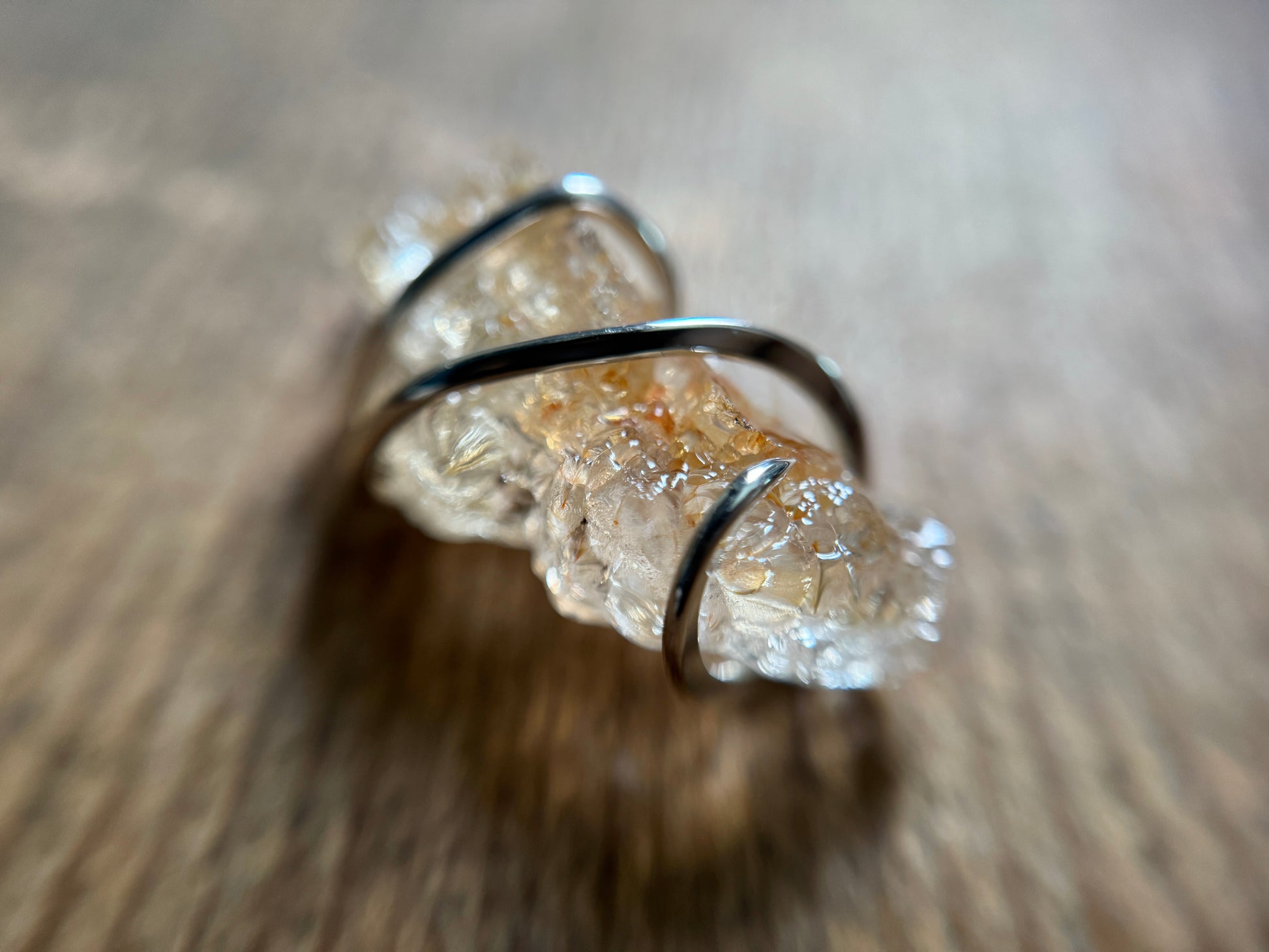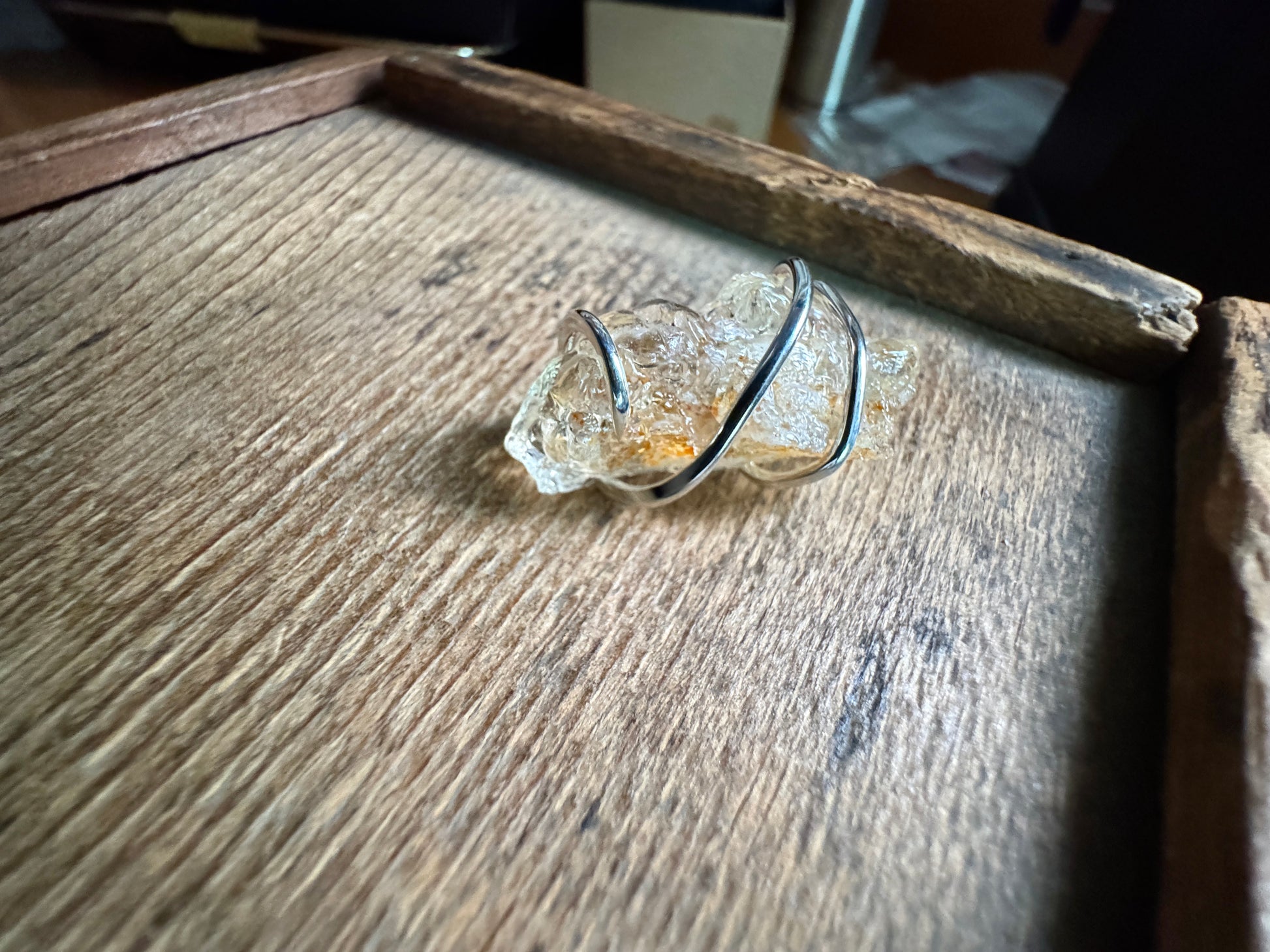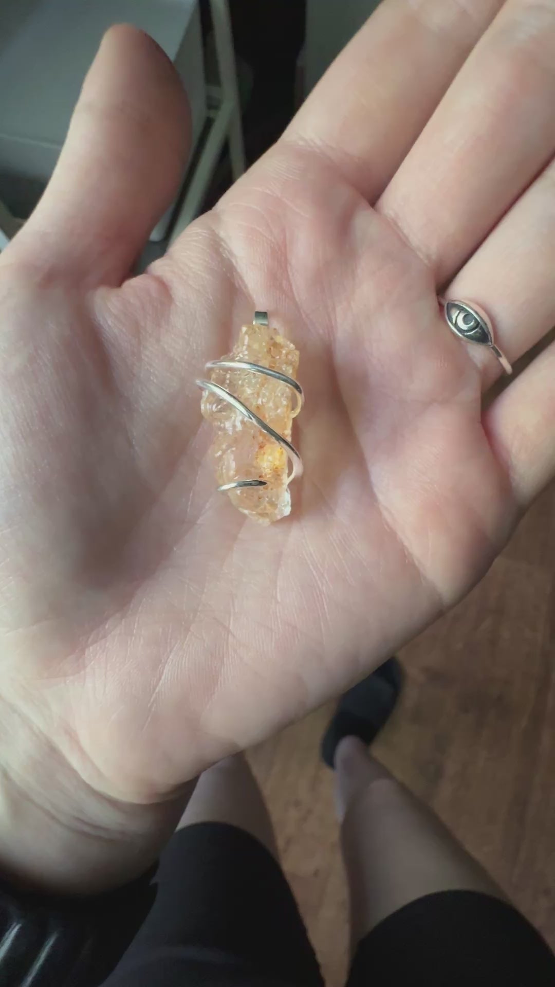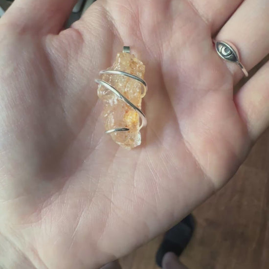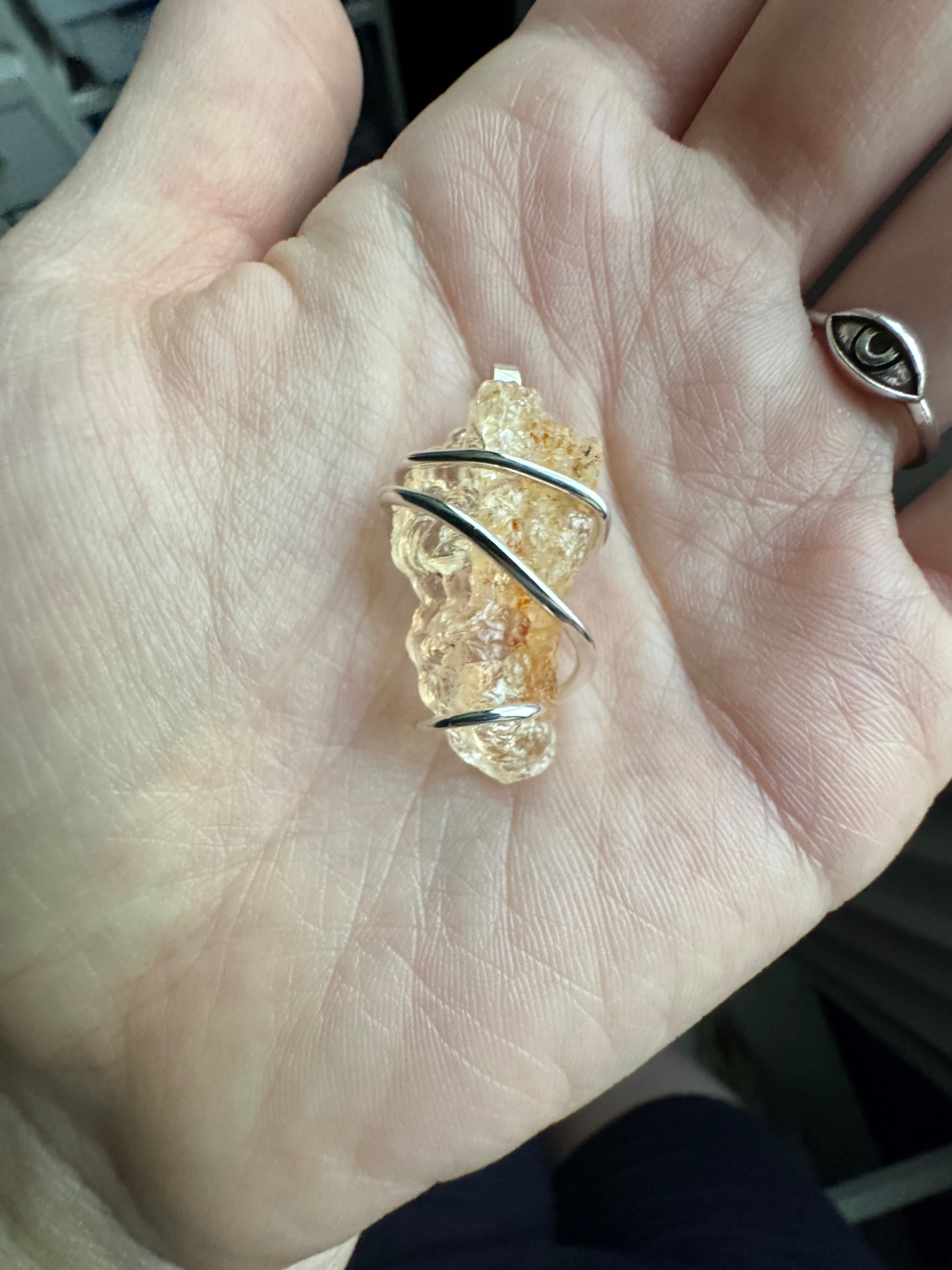 Rough Mexican hyalite opal, artfully tension set in polished sterling silver pendant.