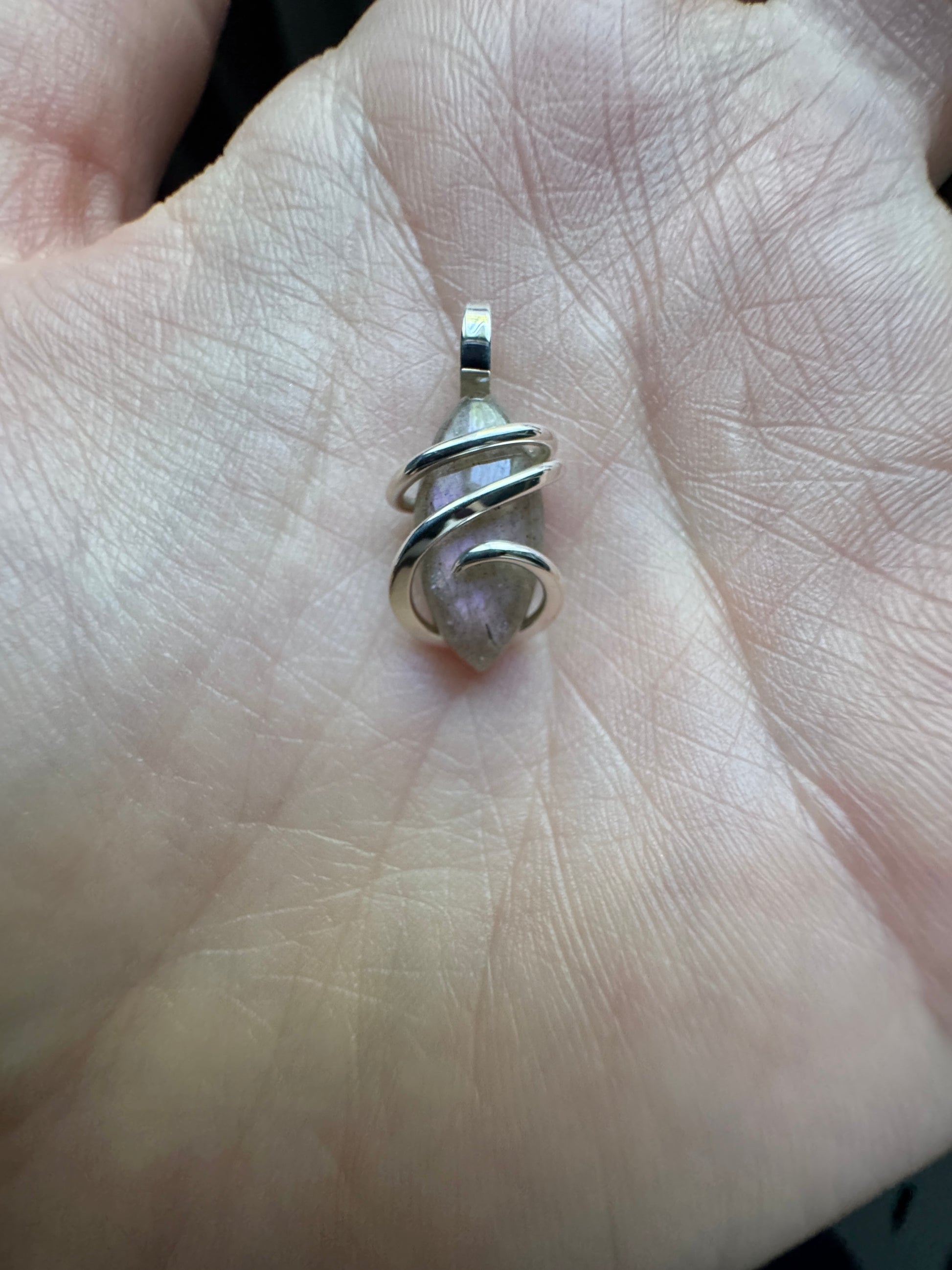 Pink labradorite in sterling silver pendant